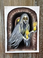 Candlelit Ghoul of the Haunted Hallway Original Pastel Drawing 6X8