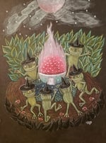 Behold a coven of frog witches dancing around the mystical fly agaric mushroom! This is an archival ink print of a piece originally made in soft pastels. It comes on Archival Matte paper, unframed.