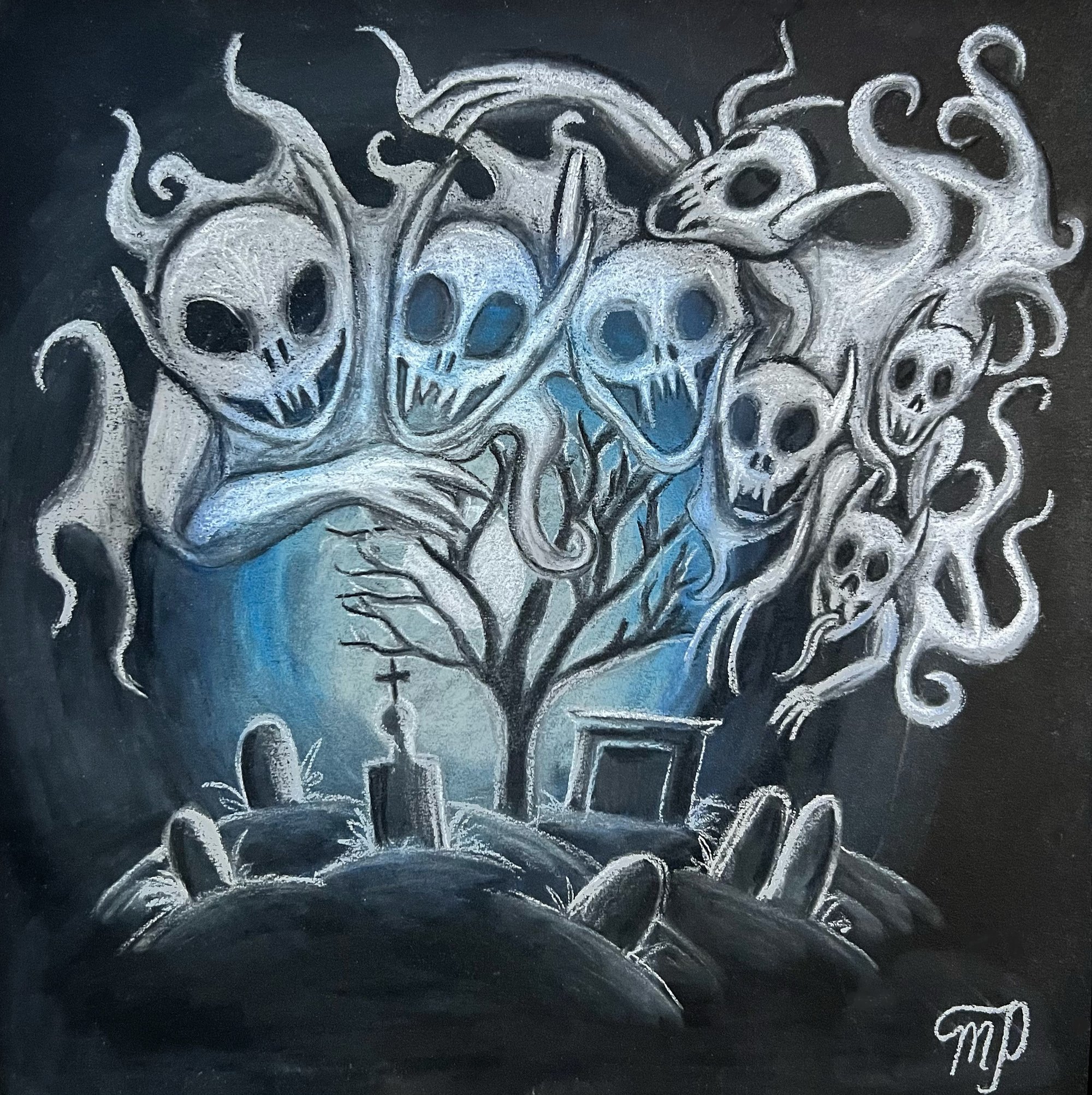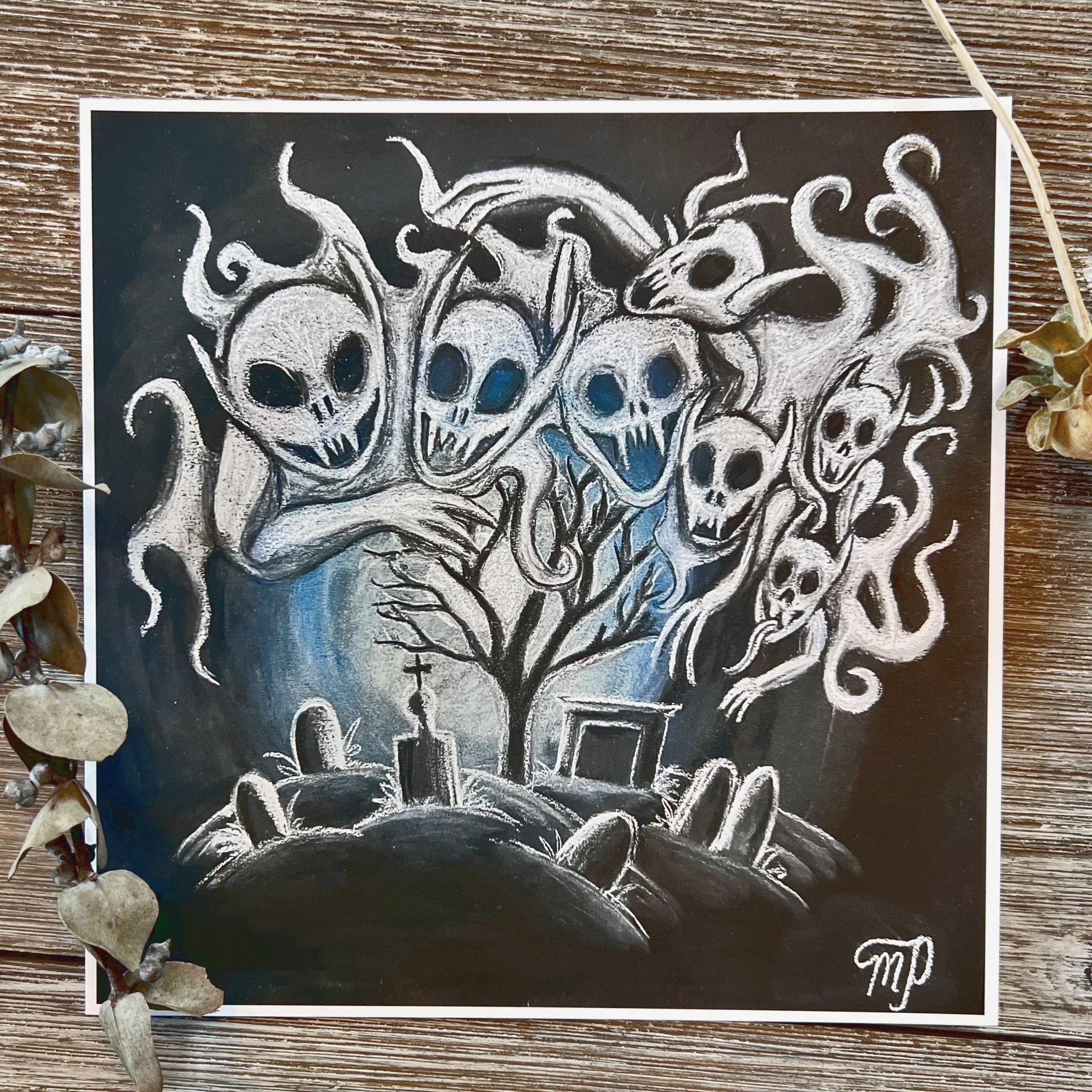 The Sluagh, from Irish and Scottish Folklore, is a flying storm of lost souls who come to wreak havoc on Hallows Eve. This is an archival ink print of a piece I originally made in soft pastels. It comes on Archival Matte paper, unframed.